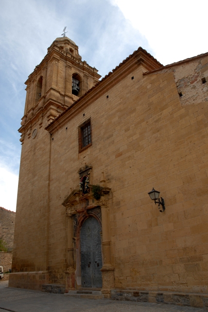 También al exterior destaca la portada del siglo XVII. Es en arco de medio punto, flanqueado por dos columnas sobre las que descansa un entablamento y un frontón triangular partido, interrumpido por una pequeña hornacina, a su vez coronada por un pequeño frontón curvo partido. Finalmente, luce una cornisa de ladrillo aplantillado.