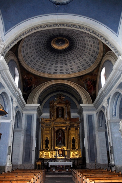 En el interior la nave se divide en tres tramos cubiertos con bóvedas vaídas, salvo el tramo anterior a la cabecera, en el que se alza una cúpula muy rebajada sobre pechinas.