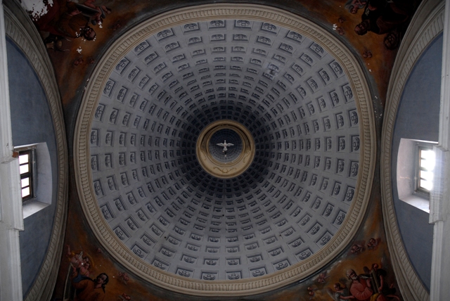 Las capillas laterales están cubiertas con bóvedas de medio cañón con lunetos.