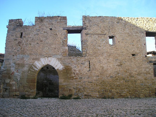 En la fachada principal se abre todavía el arco de acceso apuntado, gótico, que presenta un perfil rebajado hacia el interior.