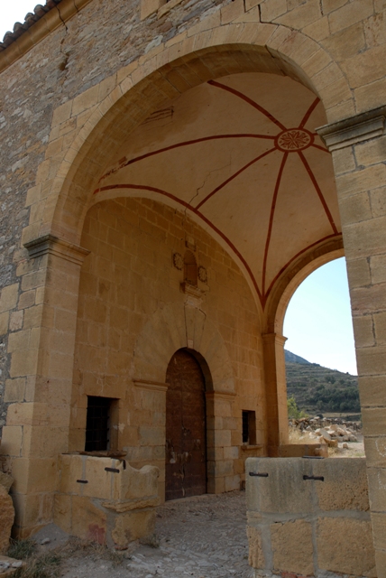 Situada fuera del recinto amurallado, es una construcción de mampostería, de planta rectangular, con un atrio delantero abierto con tres grandes arcos de medio punto y cubierto con bóveda vaída.