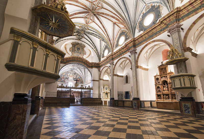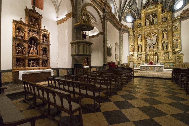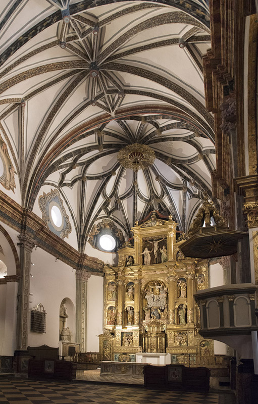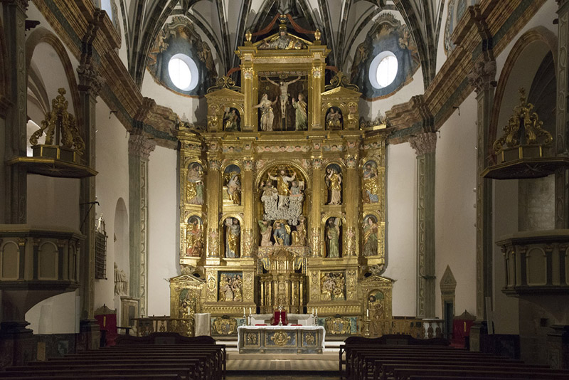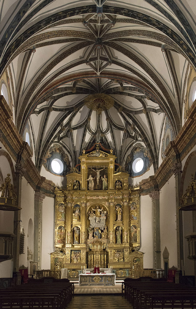 Planta renacentista con nave central de cuatro tramos, muy ancha y con capillas laterales entre los contrafuertes, el abovedamiento de todo el edificio es tardogótico a base de bóvedas de crucería estrellada y se atribuye al arquitecto francés Pierres Vedel. En esta iglesia también trabajó el arquitecto Martín de Castañeda.