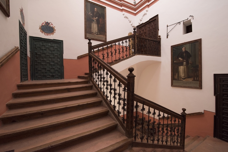 Destaca su monumental escalera, rematada en torre-lucenario y en cuyo techo aparece el escudo del obispo Juan Francisco Salvador y Gilaberte. En el piso alto se conservan salones que servían de residencia al prelado, junto con la capilla, a la que se accede desde el salón principal, y tiene una decoración artística que acentúa el sentido teatral y ficticio de la arquitectura barroca. En el lado que mira hacia el río tiene una bella galería de madera, elemento también característico de la arquitectura de Albarracín.