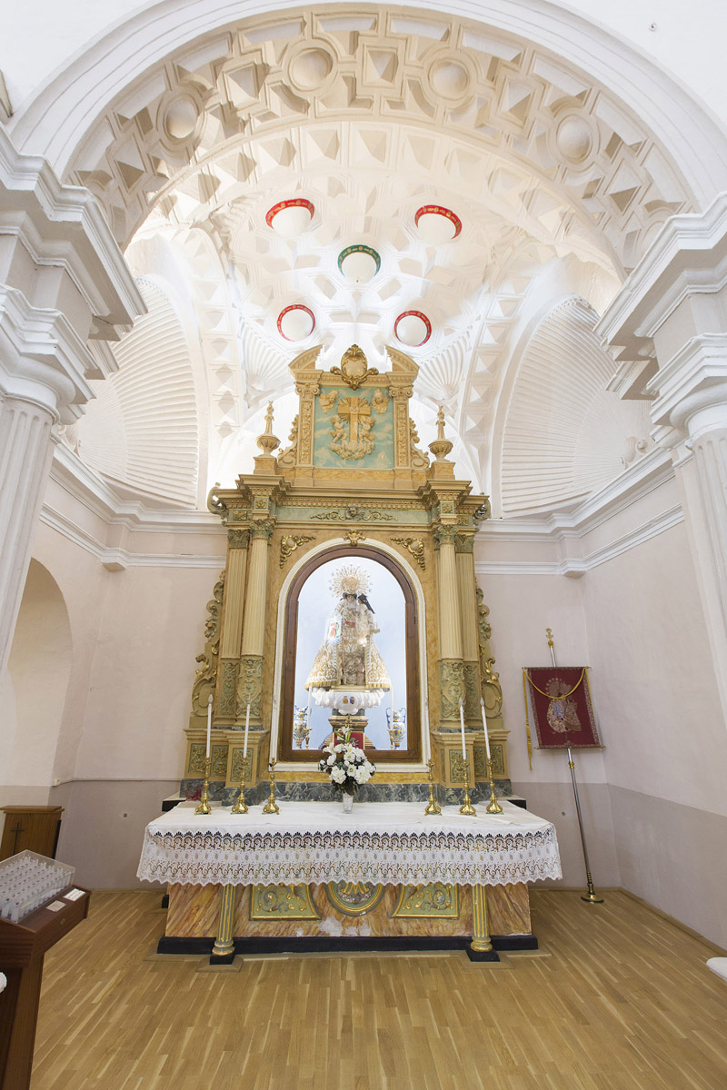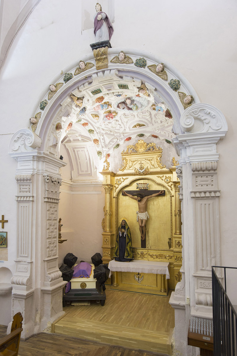 Construcción en mampostería que posee una nave de tres tramos cubierta con bóvedas góticas de crucería estrellada. Tiene capillas laterales, a ambos lados de la nave, cubiertas con pequeñas cúpulas sobre pechinas. La capilla del Santo Cristo conserva restos de estuco. El sistema de soportes se organiza a base de pilares fasciculados, con la rosca del arco decorado con motivos geométricos. La cabecera poligonal también tiene bóveda estrellada; coro alto a los pies. El interior se terminó entre 1624 y 1689. La torre que es cuadrada y se cubre con bóveda estrellada, está adosada a los pies y tiene dos cuerpos, el superior de campanas.En el lado de la epístola se sitúa la entrada a la iglesia por medio de un atrio con arco de medio punto. La portada sigue un esquema clásico con muy poca decoración y pertenece a la etapa neoclásica.
