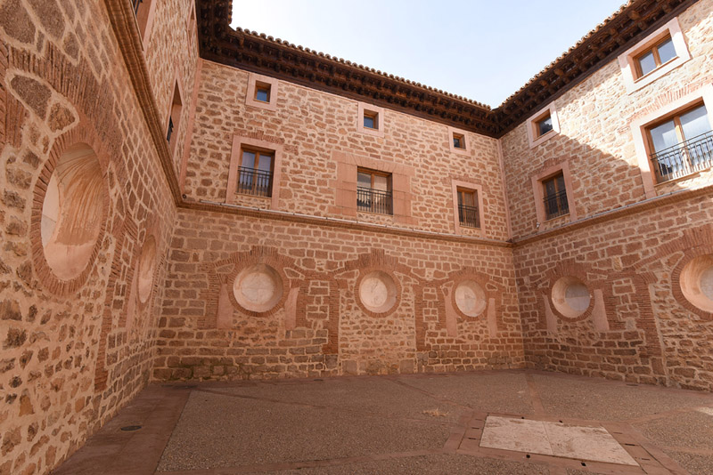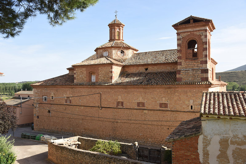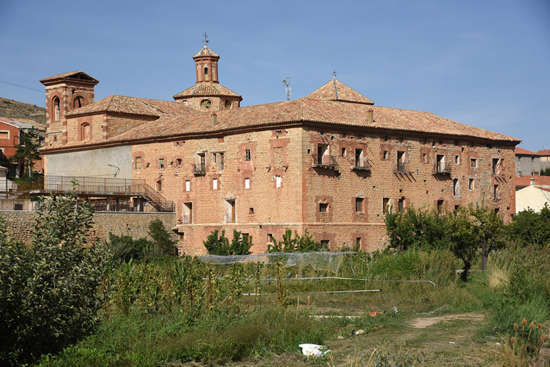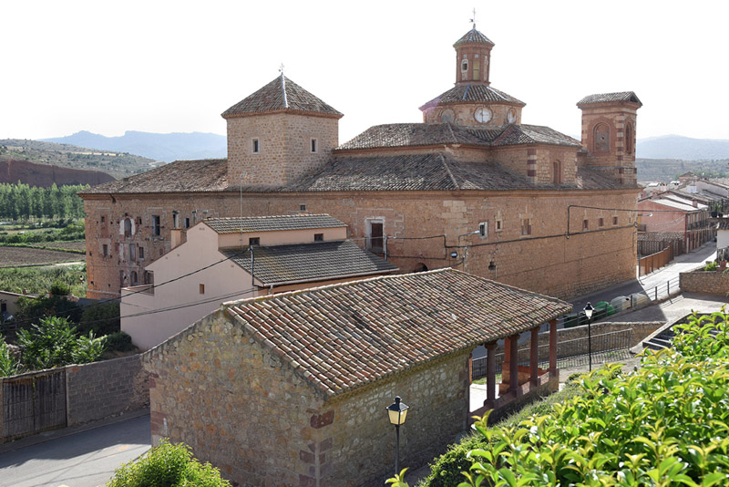 El edificio es sobrio y muy cerrado al exterior. En él destaca sobre todo el juego de volúmenes que anima las cubiertas en la zona noreste, donde se elevan la torre y el cimborrio de la iglesia y, en sus proximidades, el torreón que alberga la escalera. El cimborrio, de planta octogonal, presenta en cada uno de sus lienzos óculos de iluminación y está rematado por una pequeña linterna también octogonal decorada con pilastras de ladrillo en las esquinas. La torre de escaleras presenta huecos cuadrangulares en la parte superior de sus cuatro lienzos.