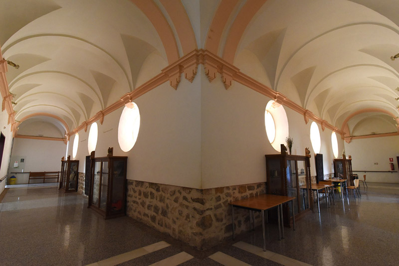 Sus espacios más relevantes, como es habitual en este tipo de conjuntos monacales, se concentran en el interior. Se trata de la iglesia y el claustro.