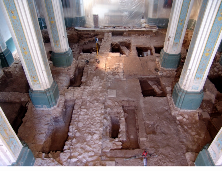 El santuario actual es un templo barroco de tres naves, con la central más ancha que las laterales y cabecera poligonal prolongando la nave central.