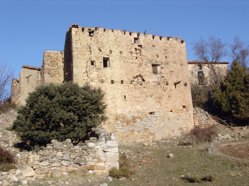 Potente estructura turriforme, con restos de un amplio cadalso de madera, situada en un caserío cercano a Alcotas.