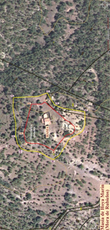 Uso del suelo: La cubierta arbórea solo es significativa en la parte septentrional del enclave, dominando el pinar con presencia minoritaria de otras especies (carrascas, enebros y sabinas); en el resto del espacio domina el matorral y las herbáceas. La mayor parte del enclave carece de uso conocido. La masía, abandonada durante más de medio siglo, se encuentra en proceso de rehabilitación.