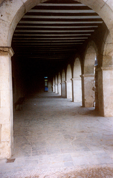 La lonja está formada por ocho arcos de medio punto y uno en el fondo de la misma, dada su situación en esquina.