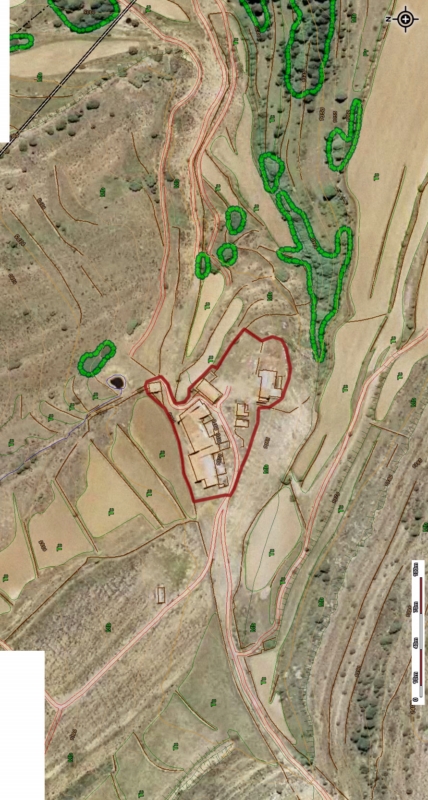 Del resto de edificaciones solo destaca una pequeña vivienda con un arco de medio punto de sillería de grandes dovelas. En la jamba izquierda hay grabadas varias cruces.
