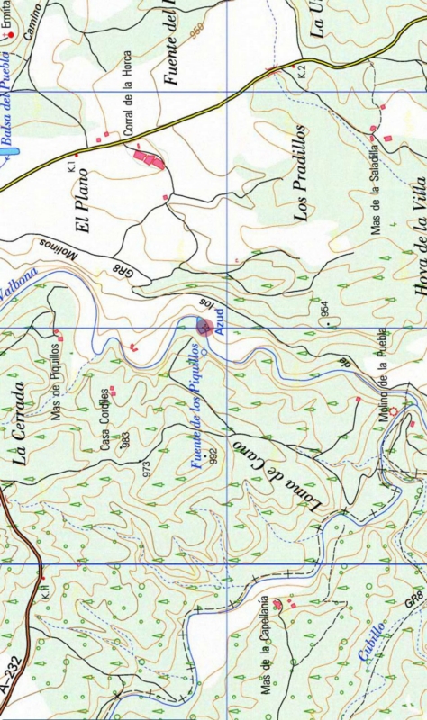 Las estructuras se sitúan sobre el propio curso fluvial y en la margen derecha, por donde, además, discurre la acequia que conducía el agua al molino de La Puebla.
