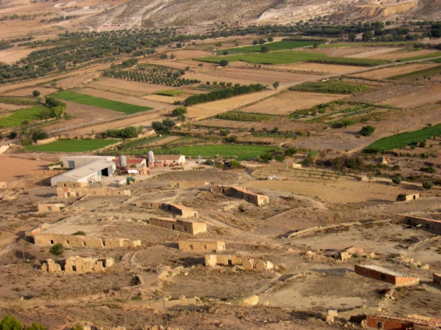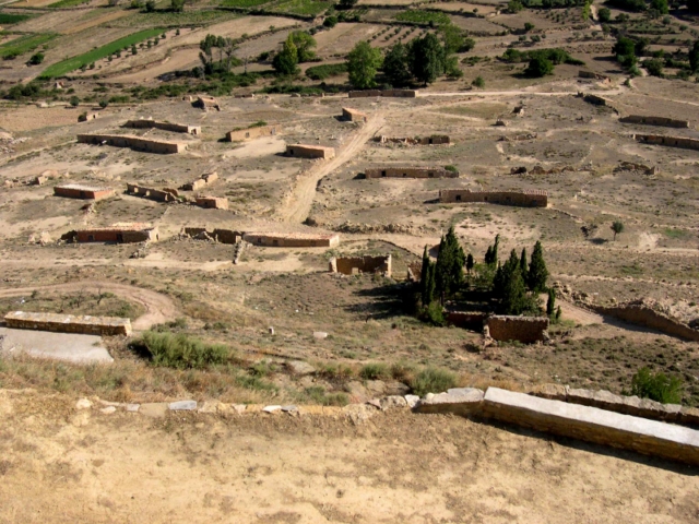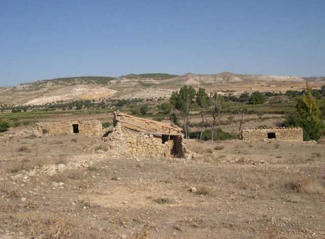 Conjunto de eras y pajares situado frente a las bodegas, al norte de la población de Alacón, y en hondo.