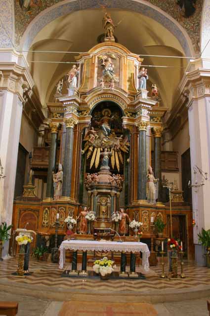 La iglesia parroquial es un edificio barroco de mampostería y cantería, con tres naves de cuatro tramos que se cubren con bóveda de medio cañón con lunetos apoyadas en arcos rebajados y pilares cruciformes, crucero y cabecera plana. En el crucero hay una cúpula con linterna sustentada sobre pechinas que al exterior se manifiesta mediante tambor octogonal, linterna de ladrillo y cupulín de teja vidriada.