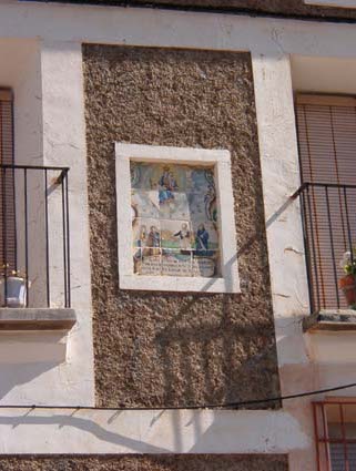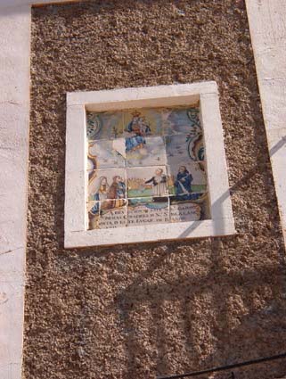Cerámica en la que aparece la virgen de la Langosta con una inscripción en la que aparece entre otras cosas el año 1776.