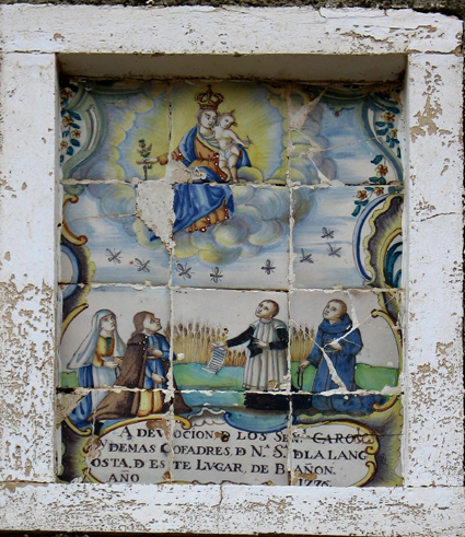 Cerámica polícroma con la representación de la Virgen de la Langosta. Representa un rompimiento de gloria con la imagen de la Virgen de la Langosta, con el niño en brazos. Bajo ella se encuentran los comitentes y bajo estos se ubica una inscripción con la leyenda: "A DEVOCIÓN DE LOS SEN. CARO/ Y DEMÁS COFRADES DE Nª Sª DE LA LANG/OSTA DE ESTE LUGAR DE BAÑÓN./ AÑO 1776". Posiblemente esta cerámica haya sido desplazada desde su lugar original de ubicación.