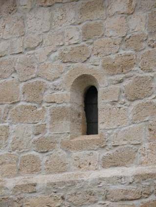 La cabecera es poligonal, con varios vanos cerrados, que posiblemente procedan de la antigua ermita.