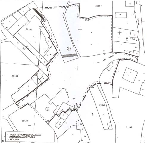 Su actual fisonomía es posiblemente medieval, dado a conocer por primera vez por Almagro en 1952. Está situado sobre el río Jiloca, a la altura del actual casco urbano de Calamocha, en el cual, Ceán Bermúdez, en 1832, afirmaba que todavía se conservaban testimonios del poblamiento romano.