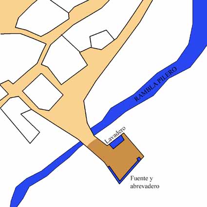 El conjunto está situado en las afueras del pueblo, junto a la rambla Pilero. Se encuentra a unos dos metros por debajo del nivel del suelo, para facilitar la surgencia de las aguas. La fuente y el abrevadero se estructuran en forma de L. En sus proximidades el lavadero delimita un amplio espacio público en forma de cuadrilátero.
