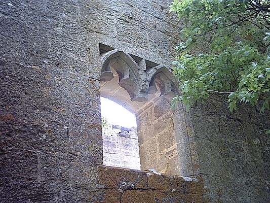 La otra torre es de construcción similar, pero presenta una pared caída. La puerta comunica con una sala rectangular de gran empaque, de 18 por 5 metros, con acceso en arco apuntado y dos ventanas geminadas; conserva otros dos arcos apuntados en la cubierta y el sótano.