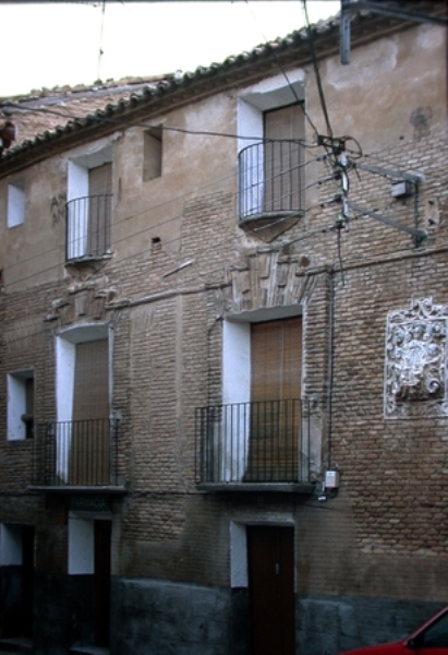 Edificio señorial de tres plantas, las dos inferiores construidas en ladrillo y la superior con acabado enlucido de yeso, bajo una sencilla cornisa de esquinillas.
