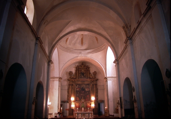 Forma parte del conjunto palacial de los duques de Villahermosa, del cual constituye su ala oriental. La planta es de cruz latina con una nave de cuatro tramos, brazos del crucero y presbiterio cubiertos con bóvedas de medio cañón con lunetos y el espacio central con cúpula ciega sobre pechinas. Entre los contrafuertes de la nave se disponen capillas de poco fondo y bóveda de cañón, que conectan con la nave mediante arcos de medio punto. También los brazos del crucero presentan muy poco fondo, de tal modo que es igual que el de las naves. El coro alto se sitúa a los pies sobre arco rebajado; el juego de pilastras y entablamento es muy sobrio.