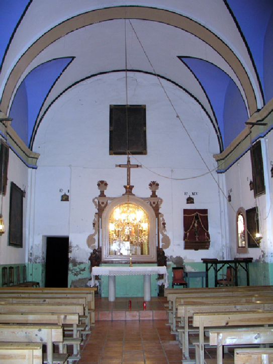 La ermita cuenta con planta rectangular con una nave de tres tramos, que se cubre con cañón con lunetos, cabecera recta, y coro alto, en el tramo de los pies de la ermita.