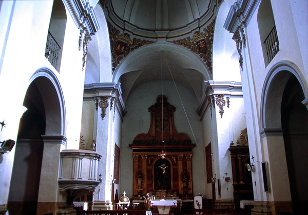 Los arcos fajones de separación de los tramos apoyan en un ritmo de pilastras adosadas a los muros interiores de la nave. Sobre las capillas corre una tribuna abierta a la nave mediante arcos de medio punto y con huecos de iluminación a base de arcos rebajados.