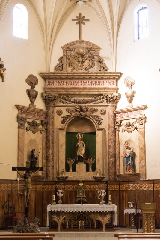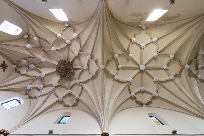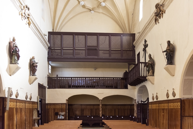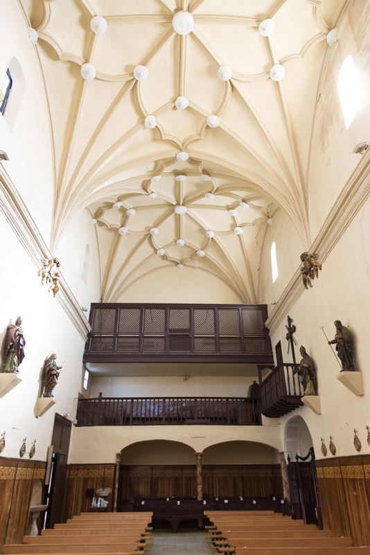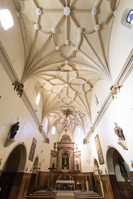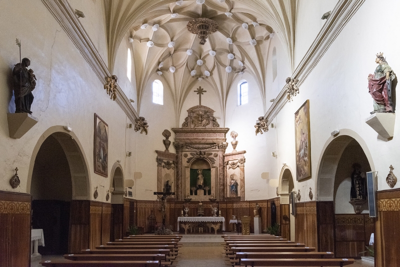 Es un templo de una sola nave con bóvedas de crucería estrellada que comprende dos tramos y cabecera poligonal, de amplias dimensiones. Las bóvedas tienen una estructura de nervios con terceletes y combados.