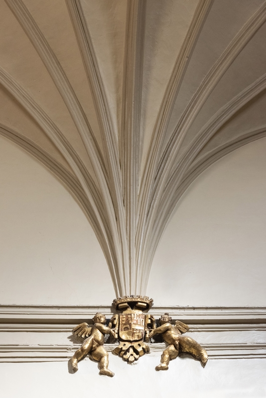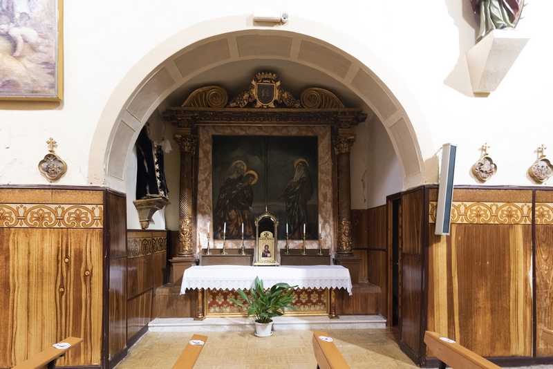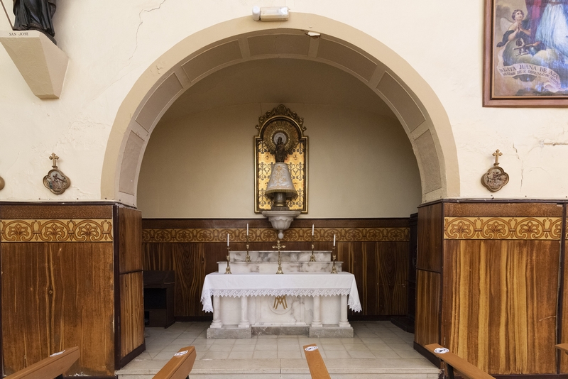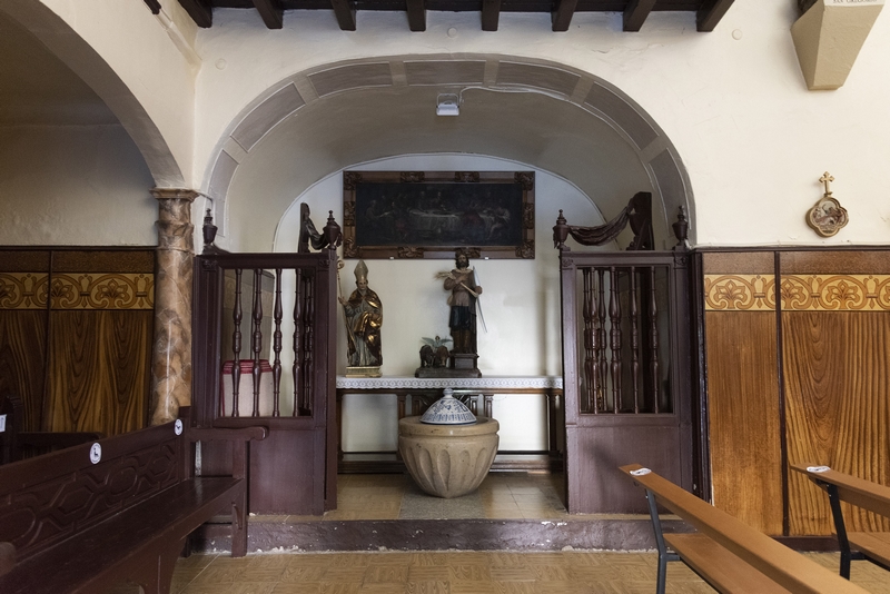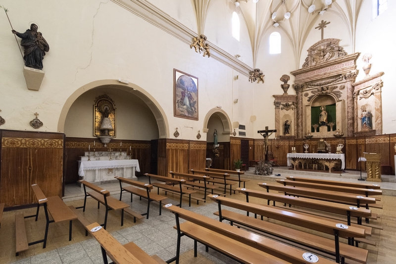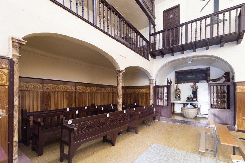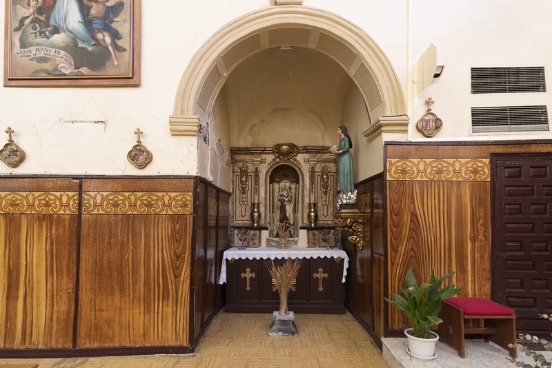 Dispone de tres capillas laterales a cada lado, de poca profundidad, que se comunican a la nave mediante arcos de medio punto. Sobre las capillas del lado de la epístola recorre el conjunto una galería que comunica con el palacio-convento.