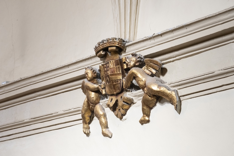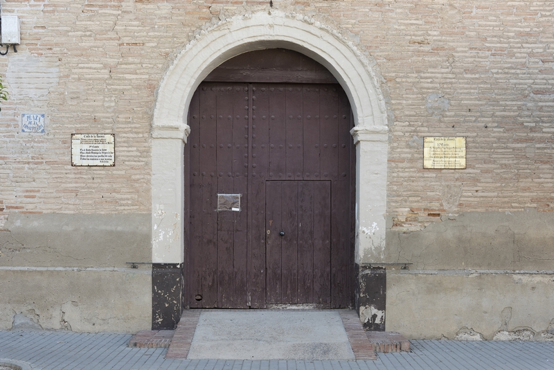 La iglesia tiene dos accesos, uno vinculado con su función parroquial y otro relacionado con el palacio.