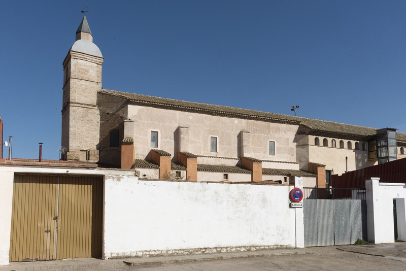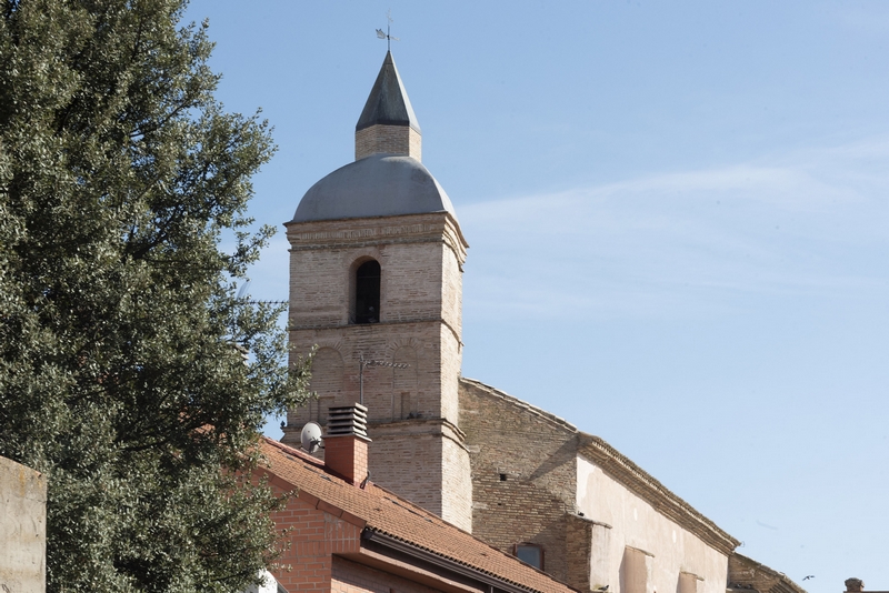 El revestimiento de arquitectura civil deja exenta la cabecera con sus tres planos, en uno de los cuales -el central- está adosada la torre campanario, de planta cuadrada con un cuerpo inferior liso y uno superior de campanas con una vano adintelado en cada cara y remate almenado.