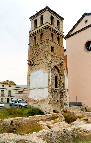 Esta torre mudéjar se levantaba a los pies de una antigua iglesia mudéjar prácticamente desaparecida, ya que sólo se conservan los cimientos de los tres tramos finales de la nave única.