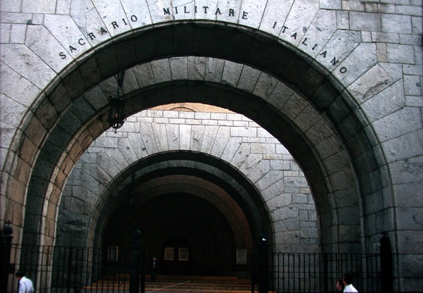 La torre-osario y el pórtico se revisten exteriormente con grandes bloques de granito que dotan al conjunto de una apariencia solemne y acorde con su carácter castrense. En su interior se dispone una pequeña capilla funeraria que ocupa la base de la torre, mientras que una suave rampa escalonada helicoidal da acceso a los enterramientos en plantas alzadas, dejando en el centro un espacio libre sobre la capilla funeraria que se prolonga hasta la cubierta, desde donde se ilumina cenitalmente.