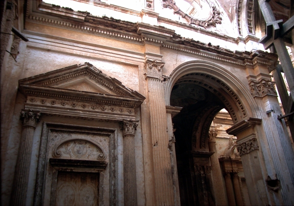 La iglesia tiene planta de cruz latina provista de naves laterales muy estrechas y bajas, e inscritas en un rectángulo, que se completa con capillas laterales en los flancos del presbiterio. Los cuatro tramos de la nave central, los brazos del crucero y la cabecera se cubren con bóvedas elípticas sobre pechinas; las capillas laterales con cúpulas hemiesféricas, también sobre pechinas, garcias a su planta cuadrada, y el espacio central del crucero, con cúpula -con tambor y linterna- sobre pechinas. Presenta una escala monumental sobre pechinas, gracias a su planta cuadrada, y el espacio central del crucero y presbiterio. Los brazos del crucero y el hastial de la nave se resuelven con sobrias fachadas que rematan frontones; el tercer cuerpo es también octogonal, con vanos de medio punto. La cúpula se divide en ocho gajos que se corresponden con los paños del tambor, en cada uno de los cuales se abre un vano adintelado, con frontón triangular encuadrado por columnas. Se conservan del recinto exterior diversos cubos entre las varias edificaciones adosadas al muro. La puerta de acceso está formada por un arco de medio punto de ladrillo entre pilastras corridas, sobre el cual se dispone un segundo cuerpo con un relieve en yeso de la Asunción, enmarcada por un óvalo.