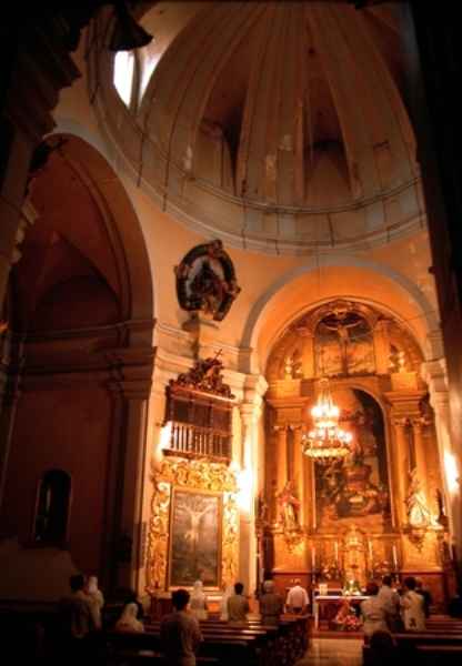 La planta de la iglesia, de cruz griega, se prolonga en el cuerpo de la nave con un segundo tramo, que aloja el coro. Los brazos se cubren con bóvedas de medio cañón con lunetos, mientras que el espacio central, octogonal, se cierra con cúpula elíptica iluminada mediante lunetos abiertos entre nervios radiales en la propia superficie de la cúpula. Esta carga en pechinas que se alargan en machones ochavados sobre los que se abren pequeños retablos.