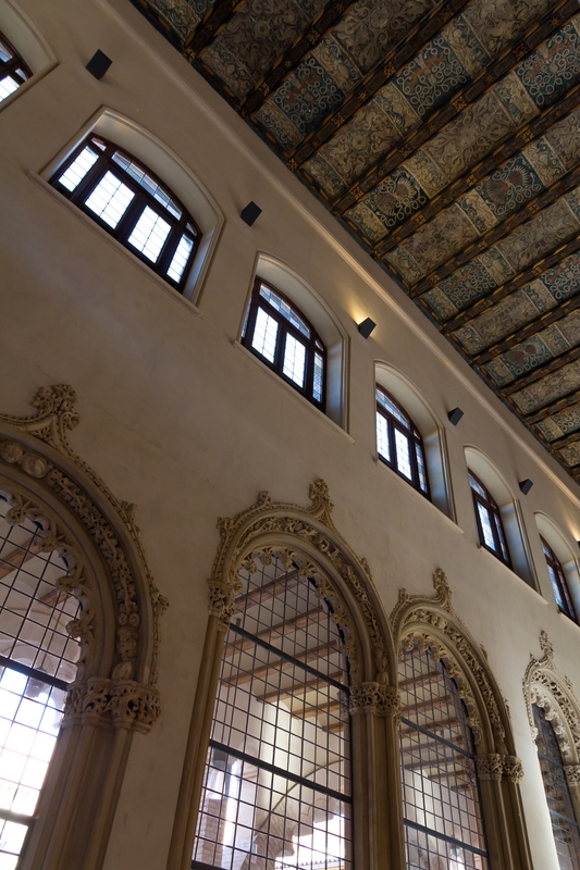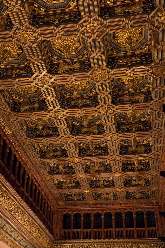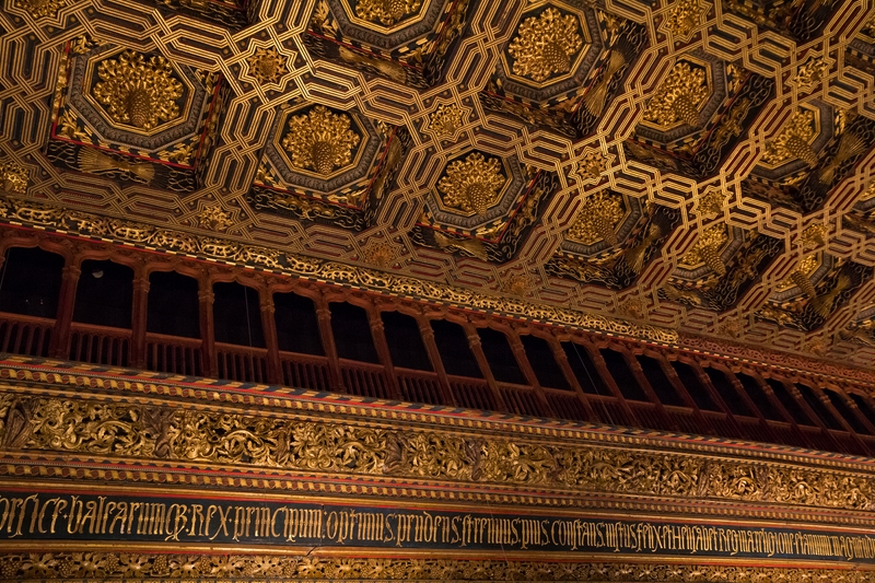 De la época de los Reyes Católicos son la monumental escalera con la que se accede al piso superior, el Salón del Trono (con su magnífico artesonado), las Salas de Pasos Perdidos y la alcoba de Santa Isabel.