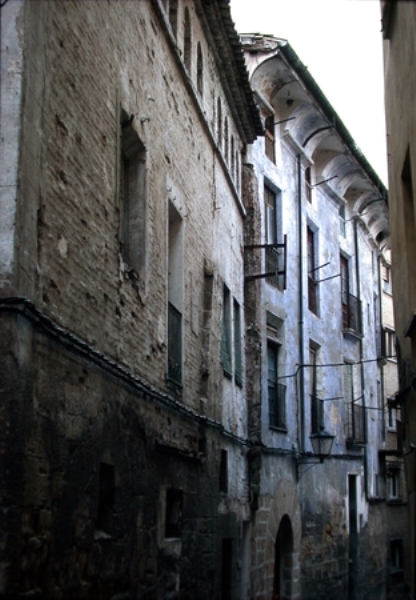 Es una construccion de esquina de potente volumen. Tiene cuatro alturas, la baja de piedra y las superiores enlucidas.