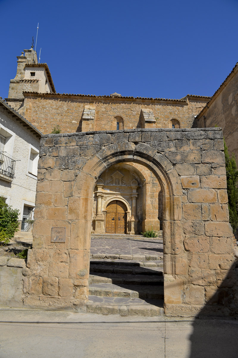 La cabecera es poligonal y está cubierta con una bóveda estrellada de sillería.