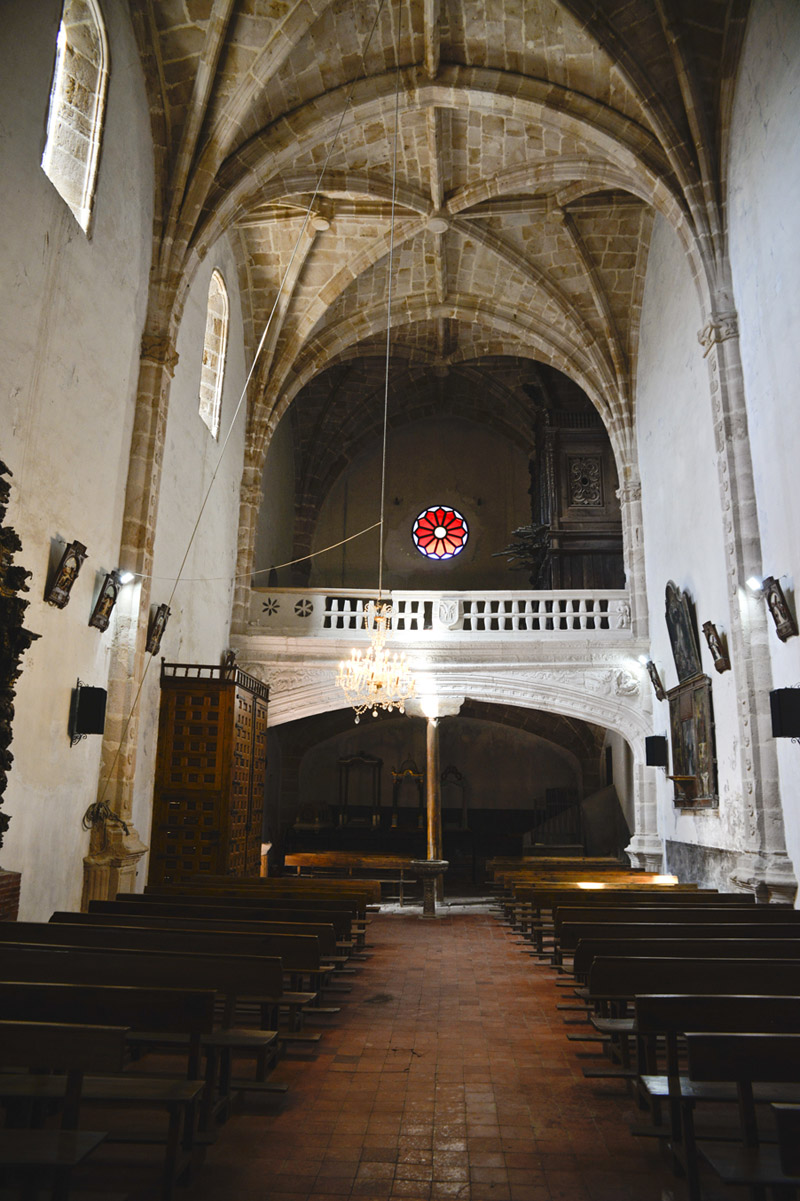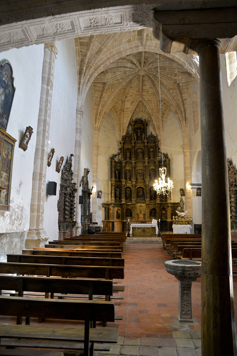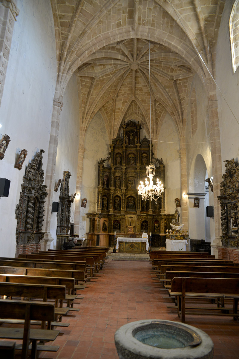Tiene una sola nave de tres tramos cubiertos por bóvedas de terceletes, con nervios y plementería de sillería, según modelo clásico del siglo XVI. Los nervios apoyan en las esquinas de cada tramo sobre pilastras jónicas adosadas.