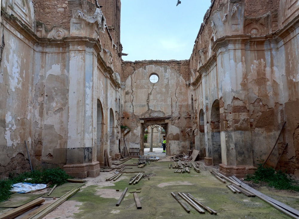La única decoración existente hoy en día son las pilastras con basamento y capitel que delimitan los tramos de la nave, y la cornisa superior desde donde arrancaban las bóvedas. En los restos de los arranques de los arcos fajones de la desaparecida cubierta, se conserva escasa decoración, consistente en rectángulos y puntas de diamante en alternancia. La decoración de las bóvedas sería muy similar a la que todavía se conserva en la iglesia del antiguo convento de San Francisco, de la misma localidad de Ariza.