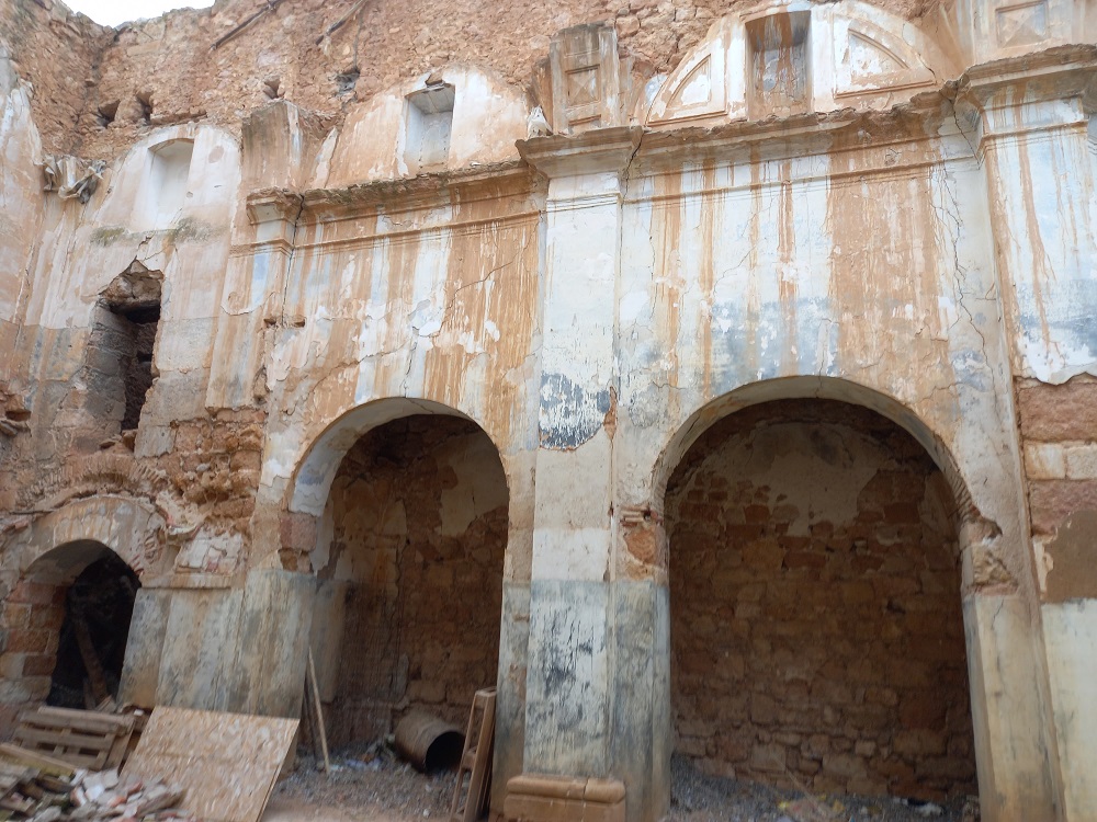 Coincidiendo con el eje de la puerta, en el muro se abre una hornacina avenerada, con frontón curvo, donde se encontraría la imagen del titular, hoy conservada en una dependencia del archivo de la casa consistorial. Sobre la hornacina hay un óculo, con rosca de ladrillo a sardinel, que iluminaba la nave.