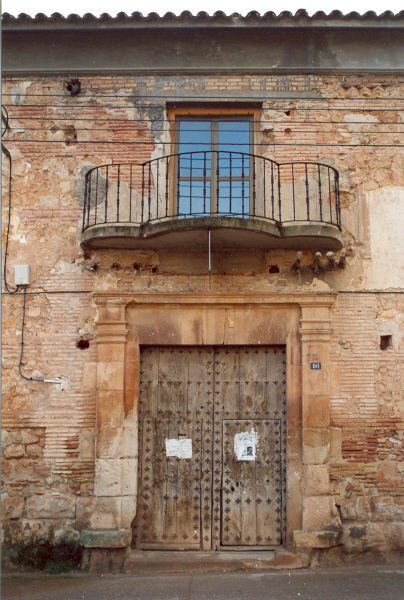 En la fachada norte se sitúa la entrada principal: una sobria portada adintelada y enmarcada por pilastras toscanas y cornisa de sencilla moldura; sobre ésta se dispone el balcón principal con gran vuelo de piedra, de formas curvas y barandilla de forja.