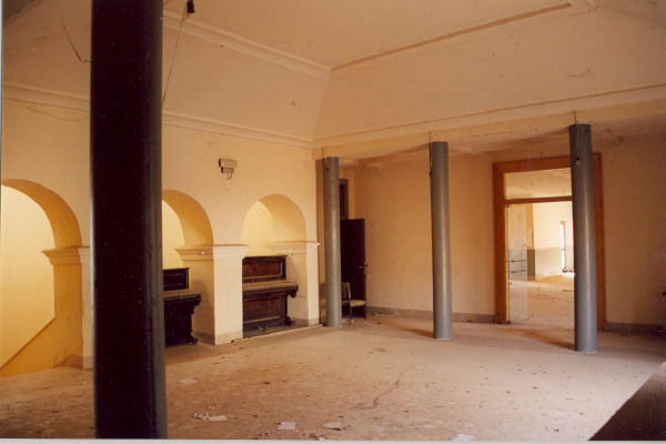 Las fachadas principales son planas, con pilastras adosadas en los extremos, y articuladas a través de grandes ventanales rectangulares, regularmente distribuidos y protegidos por barandillas de madera o de forja. El zócalo de la fachada norte recoge los alféizares de las ventanas de la planta baja, mientras que en la fachada posterior alberga los vanos del sótano (cuadrados y más pequeños). El exterior no refleja fielmente la división interior en plantas: la fachada norte presenta sólo dos pisos, en tanto que la sur cuenta con tres, por incluir la planta sótano. El edificio presenta un volado alero de madera.