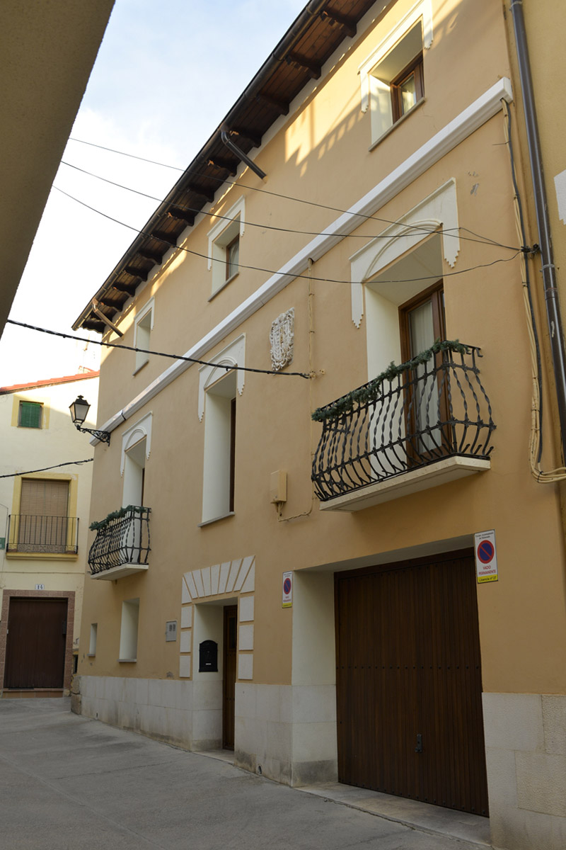 Sobria edificación de composición ordenada, con tres alturas de muros revocados y alero de madera. Destaca la decoración de guarnecido de yeso de los tres grandes huecos de la planta noble, dos de ellos con balcón y los correspondientes menores del tercer nivel. En el segundo piso pdemos observar el primitivo escudo de la casa, seguramente trasladado de sitio con la reforma decimonónica que actualmente exhibe la fachada.
