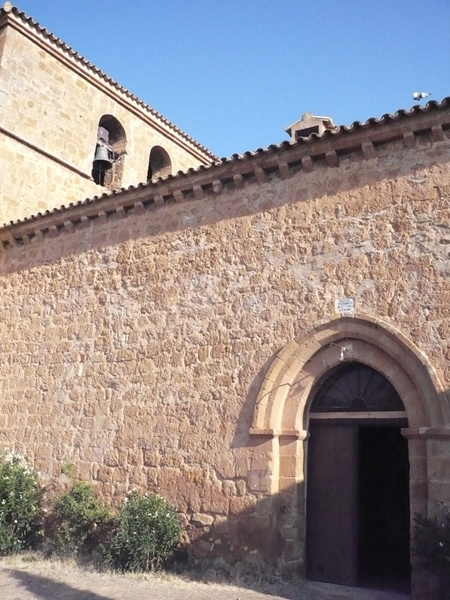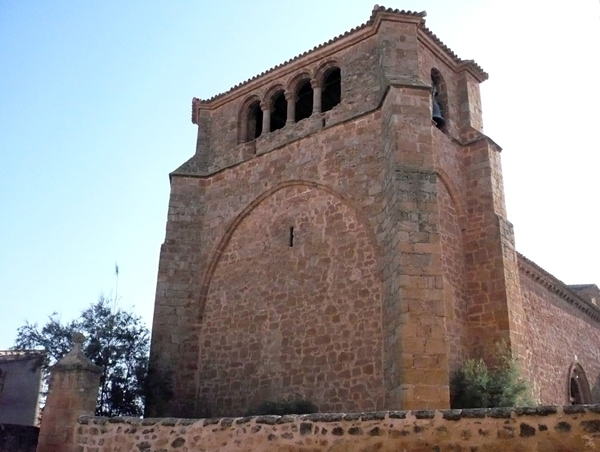 La planta es de una nave de cuatro tramos cubiertos por bóveda de medio cañón con arcos fajones de madio punto y decoración en yeso. este espacio se prolonga mediante una gran ámbito central, a modo de falso crucero cubierto por bóveda de terceletes y combados y flanqueado por dos capillas laterales, cuadradas, abiertas con arcos de medio punto y cubiertas con bóveda de crucería sencilla. El presbietrio, recto, prolonga otro tramo más de la nave, rematado también con bóveda estrellada. El volumen de la cabecera se divide en tres cuerpos: el del presbietrio más alto y los de las capillas laterales más bajos; todos ellos, construidos en muy buena sillería, o muestran en las esquinas pilastras de considerable ancho. La nave se compone de muros de mampostería, salvo la cornisa, de sillería con canes en forma de nacela, y la portada, apuntada con dos arquivoltas, chambrana e imposta de nacela. A los pies, la poderosa torre campanario, de planta rectangular, ocupa toda la anchura de la nave, con contrafuertes diagonales en las esquinas. Tiene dos cuerpos de piedra: en el inferior encontramos grandes arcos ciegos, de descarga; en el superior una serie de cuatro arcos de medio punto sobre capiteles y columnas exentas de fuste cilíndrico así como vanos más sencillos, de medio punto, en los laterales.