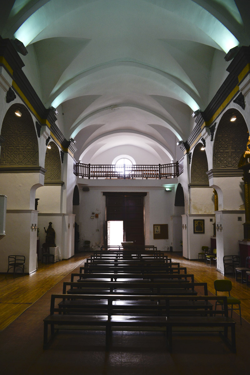 Se trata de un edificio construido en yeso y mampostería durante el siglo XV sobre una planta rectangular de nave única, de cuatro tramos, de cabecera recta y capillas entre los contrafuertes a ambos lados de la nave.