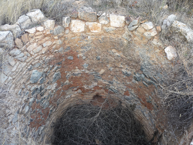 Horno de cal formado por un pozo de sección circular. Al interior está excavado en el terreno aunque también completamente forrado por fragmentos de paramentos de ladrillo o mampostería protegidos por los restos de un mortero de barro. Se remata en altura, sobresaliendo ligeramente del suelo, por una hilada de piedras gruesas.
