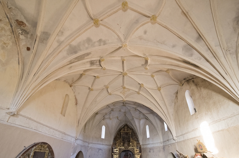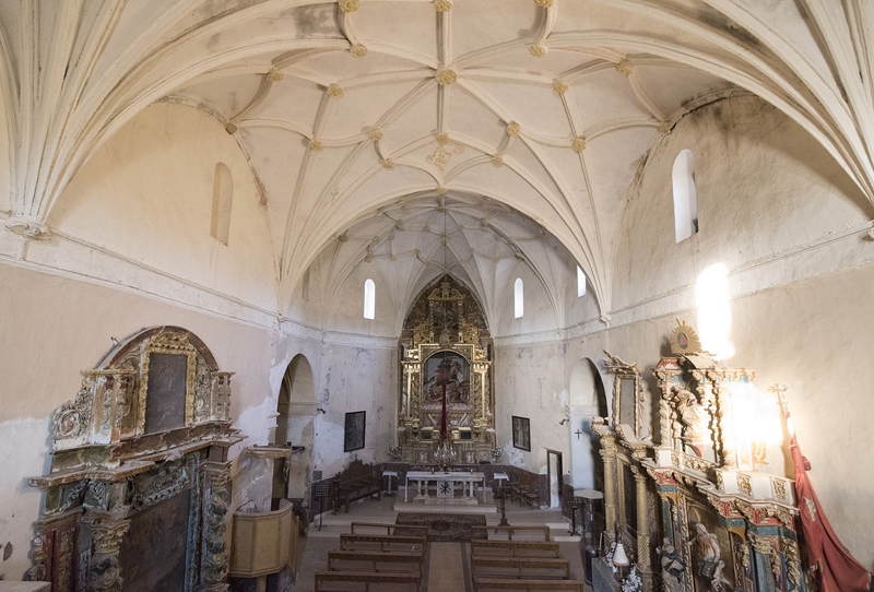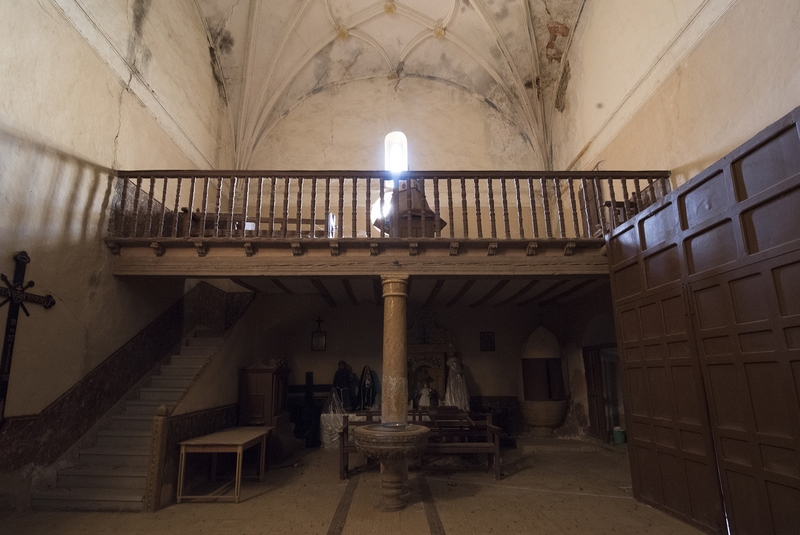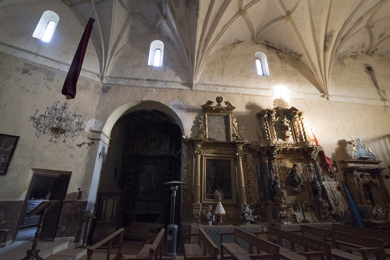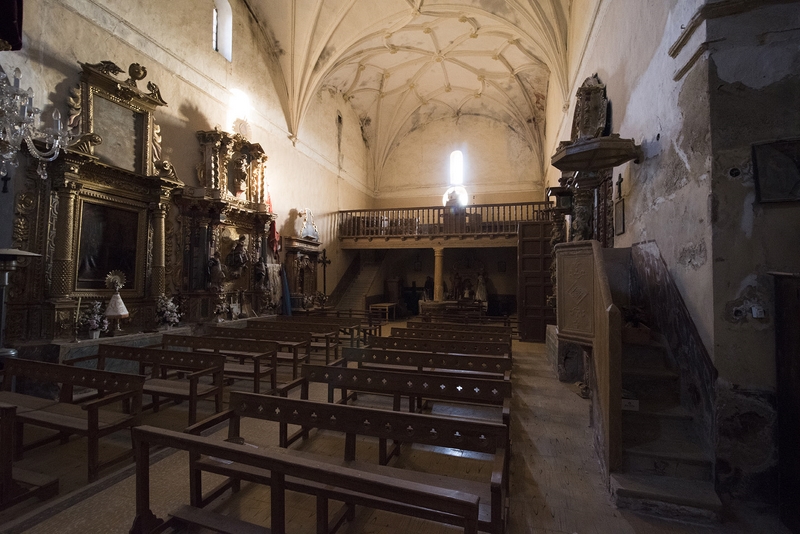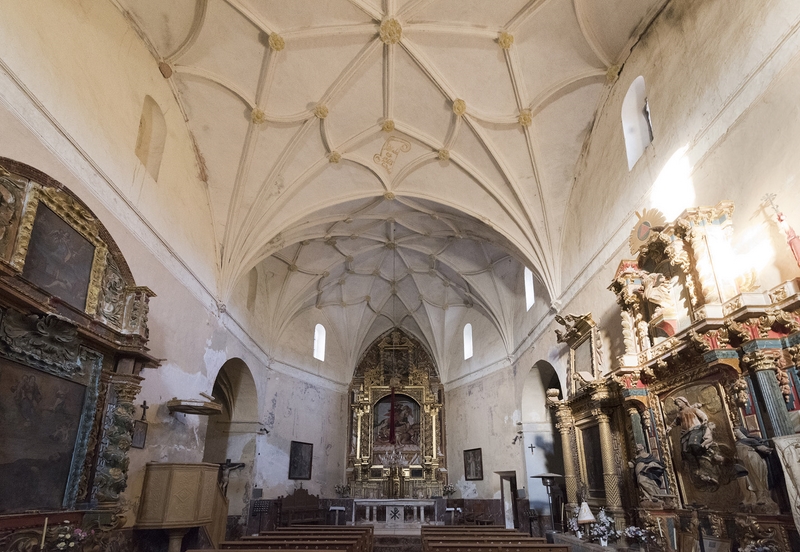 Tiene planta de nave única de dos tramos y cabecera pentagonal, como corresponde a una iglesia del siglo XVI. Las bóvedas son estrelladas con terceletes y combados. A ambos lados del tramo recto del presbiterio se abren dos capillas, una con bóveda de crucería sencilla y otra estrellada, a modo de falso crucero abiertos a la nave mediante arcos de medio punto. El coro alto, a los pies se sustenta sobre viga y columna central. La torre se sitúa a los pies en el lado del evangelio, adosada al templo. Presenta como el conjunto de la iglesia muros de mampostería y dos cuerpos de planta cuadrada; la parte baja ciega y la superior con pequeños huecos de ventana. Los muros de la iglesia presentan la misma disposición, con contrafuertes en la cabecera y pequeñas ventanas de iluminación rematadas en medio punto. La puerta de acceso se sitúa también en el flanco norte, junto a la torre, y se protege por un pequeño pórtico que dispone de un arco de pleno centro, semejante a la portada de la iglesia.