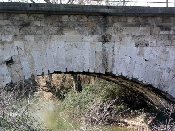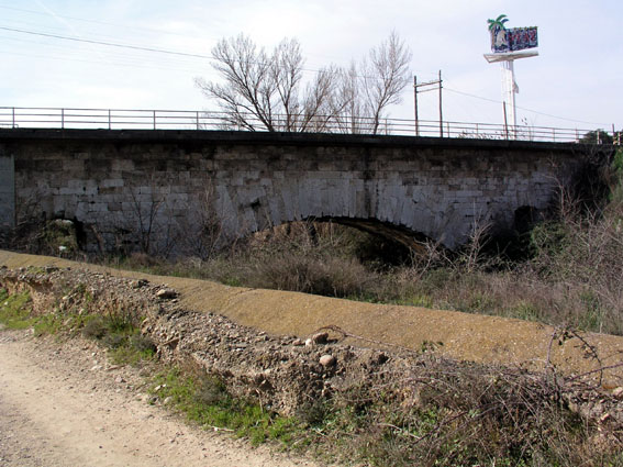 Los puentes levantados con la construcción del Canal Imperial presentan grandes semejanzas entre sí, y se inspiran en los puentes franceses de mediados del siglo XVIII. El puente camino a Pamplona, que cruza el Canal a su paso por Alagón pertenece a la tipología de puente acueducto, inusual en Europa, que tiene en el recorrido del Canal Imperial algunos otros ejemplares. El puente cruza perpendicularmente el cauce; está construido en piedra sillar, presenta un solo ojo, con bóveda rebajada y dos pequeños vanos laterales que dan paso a los caminos de sirga. Esta tipología de puente llevaba oculta una acequia bajo la calzada.